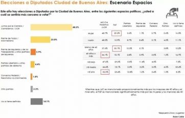 Un 34, 6 por ciento de los entrevistados de la Provincia respaldarían una lista del frente opositor, por sobre un 31, 4 que acompañaría al oficialismo, según la encuesta difundida por el diario El Cronista. La ventaja se profundiza en la comparación con la Ciudad Autónoma de Buenos Aires (48, 5 contra 23 puntos).