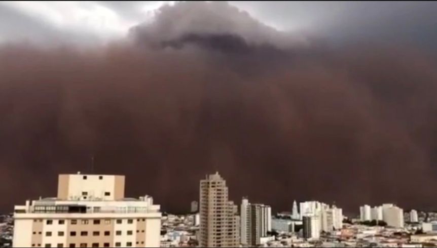 Una fuerte nube de polvo se apropió del cielo varios lugares de Brasil. Ciudades como Franca, Ribeirão, Preto, Barretos, Araçatuba y Presidente Prudente, cerca de la frontera de Mina Gerais se vieron fuertemente afectadas. Las ráfagas llegaron a tapar casi toda la visibilidad, incluyendo edificios y las casas, por lo que la circulación se vio afectada y varios comercios tuvieron que cerrar sus puertas hasta que la tormenta rojiza termine.