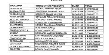 La suma total destinada por Provincia en esta oportunidad asciende a $37.800.000,00, que fueron repartidos de la siguiente forma: