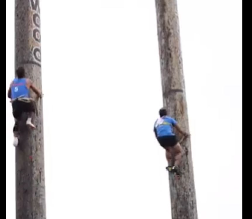 En este deporte, lo importante es la velocidad y la coordinación de movimiento. En este caso, dos hombres deben subir hasta lo más alto de un tronco y luego, bajar. Ganará aquel que logre hacerlo en el menor tiempo posible, y vos ¿te animarías a practicarlo?