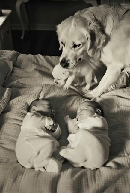 Una perra fue filmada llevando a su cría para que descanse en la cama junto a los hijos de una pareja, mostrando la gran unidad que existe entre los nuevos miembros de la familia.