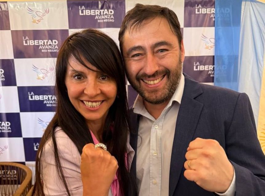 La diputada y el intendente estuvieron a los abrazos en un acto realizado en el predio La Masía, ubicado en General Fernández Oro, donde LLA reunió a la tropa para celebrar el triunfo electoral.