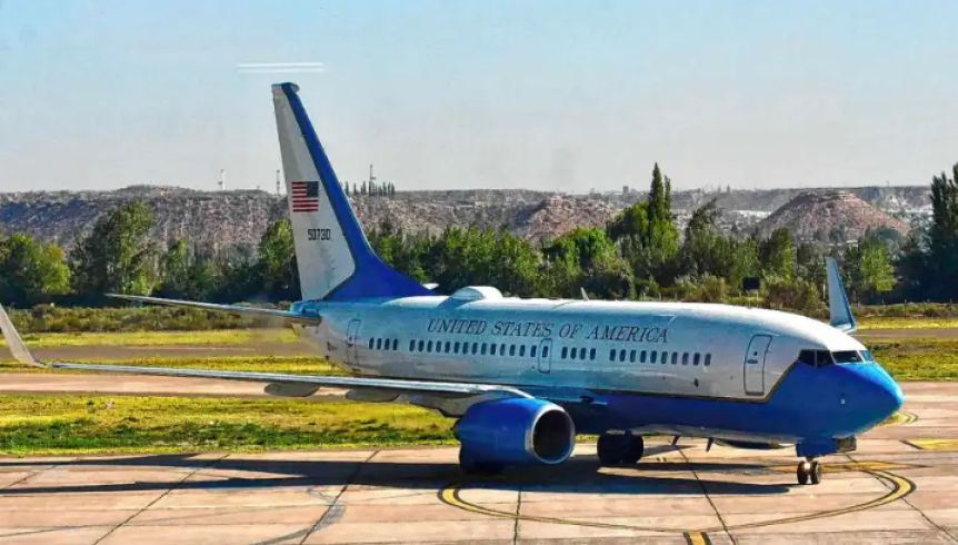 El avión Boeing C-40 Clipper de la Fuerza Aérea de Estados Unidos aterrizó este martes en Neuquén proveniente de Ushuaia con una comitiva de legisladores de la Cámara de Representantes de ese país.