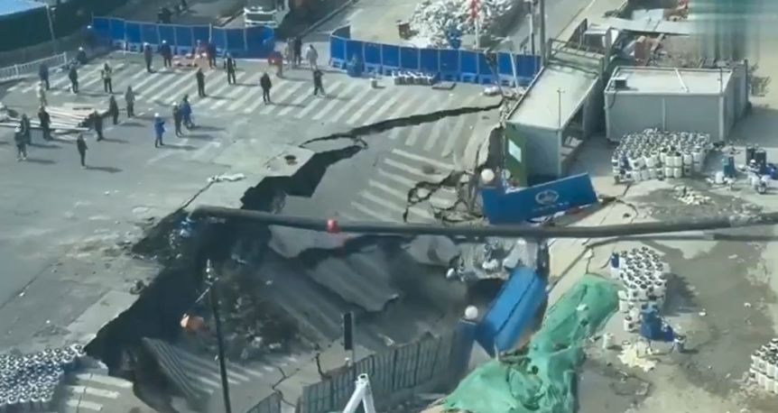 El incidente tuvo lugar en la intersección de las calles de Qixin Road y Li’an, en Shanhgái, China, donde se estaban llevando a cabo tareas de construcción de una línea de subte. Afortunadamente no se reportaron heridos.