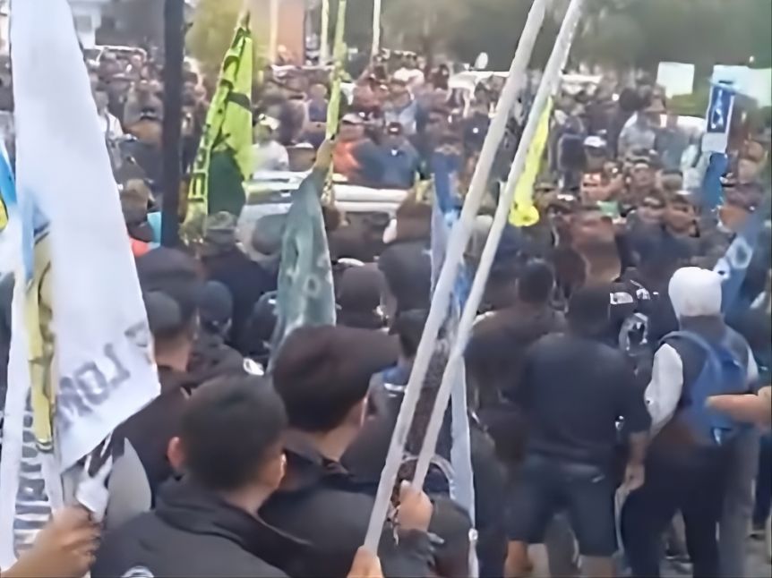 En la apertura de sesiones, durante el discurso del gobernador Torres, afiliados de la UOCRA y de sindicatos petroleros protagonizaron enfrentamientos con empujones, piedrazos y botellazos