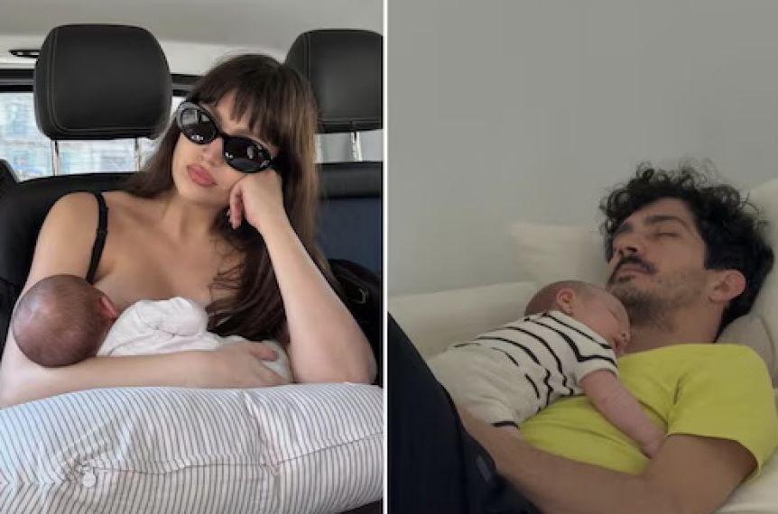 En el carrusel de imágenes, Corberó aparece amamantando al bebé en el asiento trasero de un auto con una almohada de lactancia, mostrando los diminutos pies de Dante sobre una manta blanca con corazones rojos, y retratando rincones luminosos de la casa que se han convertido en su refugio diario. También incluyó detalles cotidianos como bodies con estampados de perritos, un enterito marrón con la inscripción “mon petit croissant” (“mi pequeña medialuna”), mamaderas listas en la cocina y la tortuga de peluche que corona su cabeza en un momento lúdico y relajado.