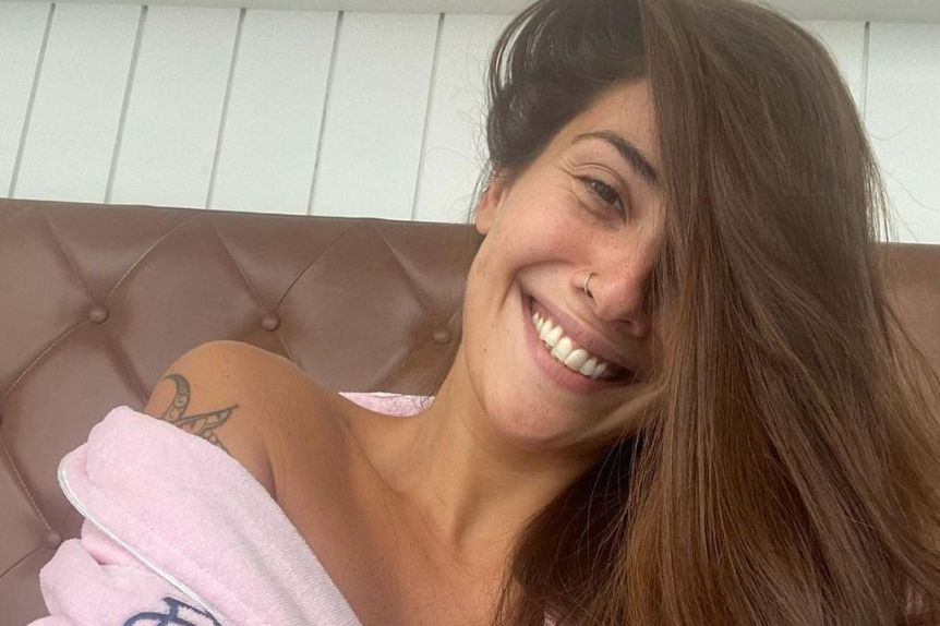 La influencer días atrás renovonó su look y recientemente levantó la temperatura desde el patio de su casa haciendo un topless cuidado con el que reflexionó sobre la felicidad. Mirá