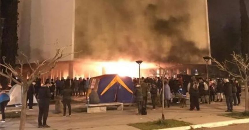 Un oficial de la División de Investigaciones de Rawson reconoció entre los atacantes que incendiaron y provocaron destrozos en el edificio de la Legislatura y la Casa de Gobierno, al ex secretario general del gremio docente, Santiago Goodman. Hay registros fílmicos que lo muestran arrojando material combustible