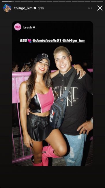 A través de las redes sociales compartieron su primera noche de jarana en nada más y nada menos que la Bresh. "Nuestra primera salida juntos" escribió Pestañela en Twitter junto a una foto de la pareja. Además ambos en sus historias de Instagram repostearon la imagen en la que los etiquetaron desde la cuenta oficial de la reconocida fiesta.