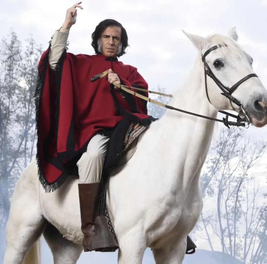 "Con carisma se nace, el poder se construye. La serie del hombre que marcó la Argentina de los 90, #Menem, inició su rodaje" anticipa el escrito que adjunta las dos capturas. La primera, de un primer plano de su rostro y la segunda, en la que se lo ve al expresidente sobre un caballo blanco.