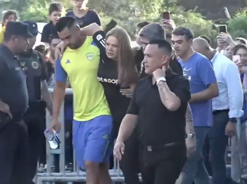 Resulta que tras dar un mal paso, Guercio se dobló el tobillo. Era tan intenso el dolor que sentía que no podía apoyar el pie en el piso. La modelo estaba junto a sus hijos y otros familiares, pero igualmente, el jugador salió a la puerta del hotel y se acercó a las vallas para ver qué era lo que sucedía con su pareja.