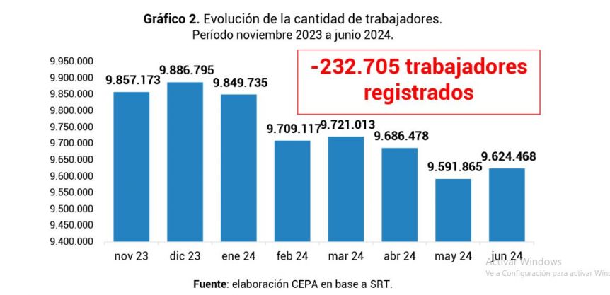 El Centro de Economía Política Argentina (CEPA) realizó un estudio sobre la dinámica laboral y empresarial de la gestión Milei y reveló que en los primeros meses de su gobierno ya se perdieron más de 230 mil puestos de trabajo, equivalentes a una caída de 11 mil empresas empleadoras.