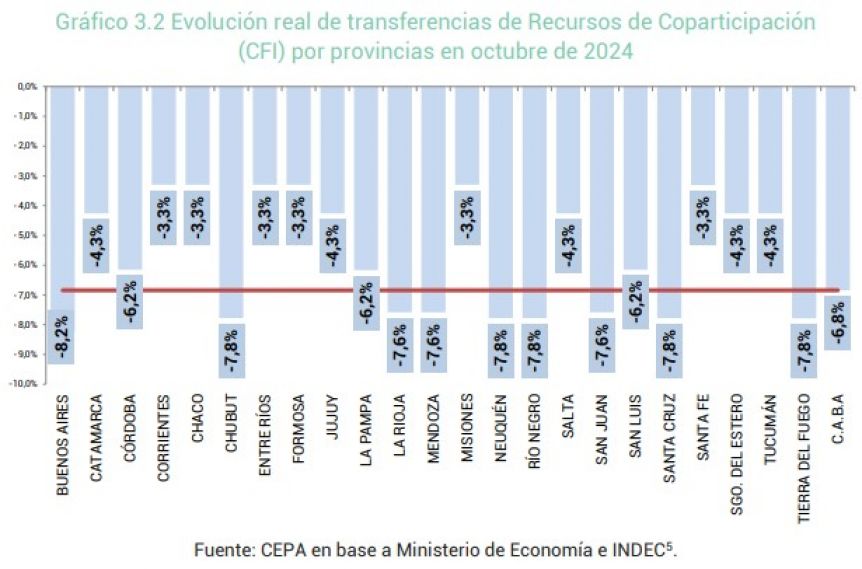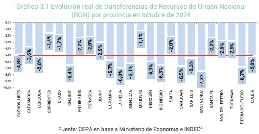El informe sobre los índices del mes de octubre que realizó el Centro de Economía Política Argentina (CEPA), reveló los números preocupantes que registran las provincias en términos de ingresos por Coparticipación Federal de Impuesto (CFI), y por Recursos de Origen Nacional (RON).