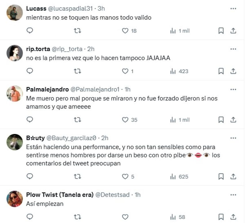 Tras la viralización del beso, muchos internautas reaccionaron y expresaron sus comentarios en X. Compartimos algunos de los mensajes más leídos: