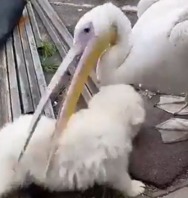 El pelícano intentaba comerse a este tierno cachorrito que no se percató y pensó que estaba jugando