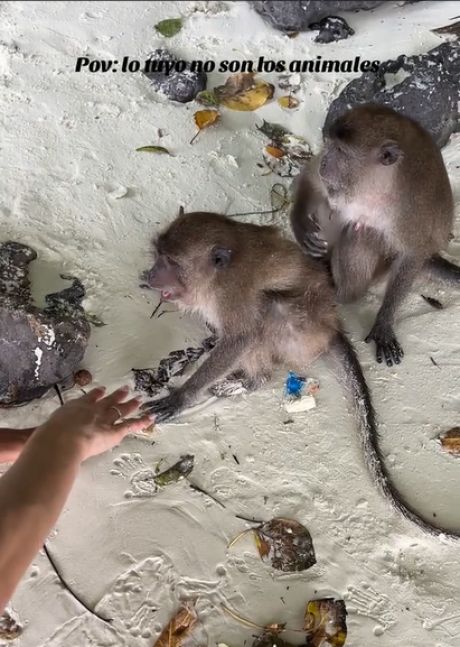 La influencer se encuentra de vacaciones en Tailandia, viaje que comparte minuciosamente a través de sus redes sociales. En esta ocasión, publicó un divertido momento con unos monos autóctonos que terminaron por "atacarla" luego de unas pocas caricias.