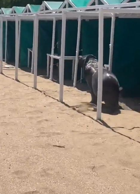 Un lobito marino quiso aprovechar el calor para meter unas vacaciones adelantadas en un balneario, pero un hombre le llamó la atención por "no haber pagado".