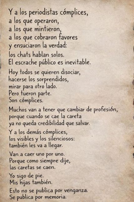 El jugador continuó: “Y hoy, como si faltara algo, salen a la luz rituales, macumbas, velas negras y sacrificios. Pero quedate tranquilo: a la gente buena, a la gente real, eso no nos afecta. Nunca fuiste poderoso. Fuiste un payaso de circo jugando a oscuro”.Icardi también apuntó contra supuestos “cómplices” en medios de comunicación: “A los periodistas cómplices, a los que operaron, a los que mintieron, a los que cobraron favores y ensuciaron la verdad: los chats hablan solos. El escrache público es inevitable”.