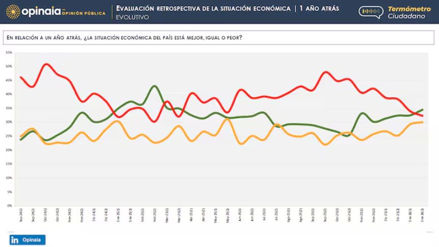 El repunte de la imagen de Milei tiene que ver, seguramente, con otro cambio que refleja la encuesta de Opinaia: la percepción sobre la evolución de la situación económica volvió a ser favorable después de mucho tiempo.