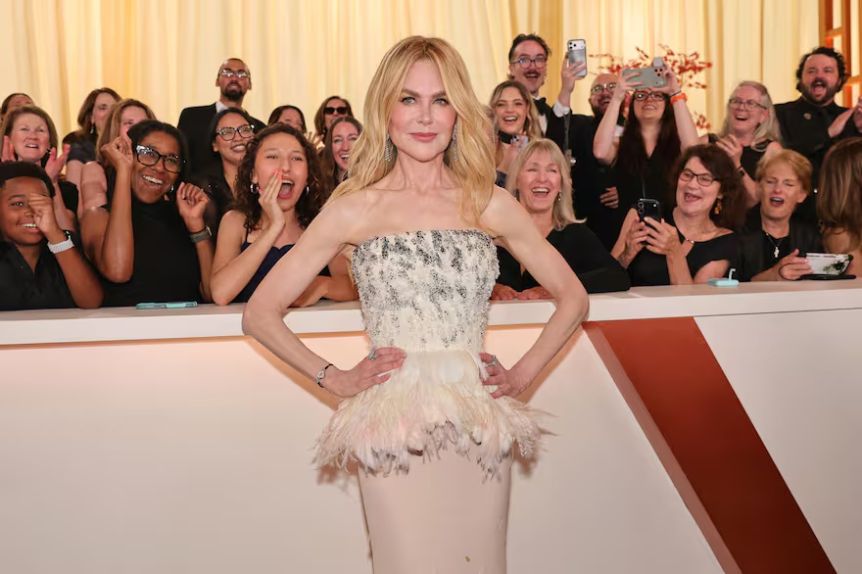 Nicole Kidman, siempre un ícono de la moda, apareció elegante en un atuendo que fusionaba brillos metálicos con siluetas clásicas, reafirmando su estatus como una de las estrellas más consistentes en términos de estilo y presencia.