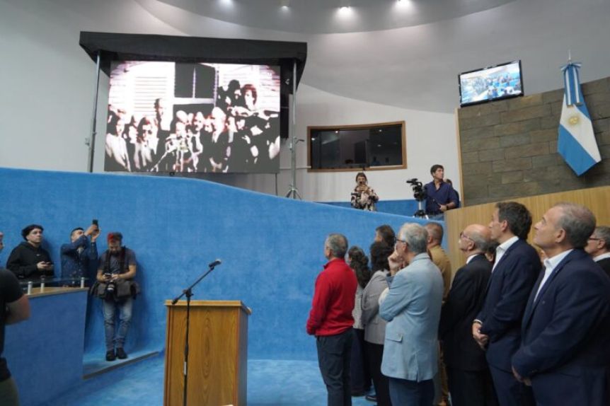 La Legislatura provincial conmemoró el anuncio realizado en 1986. El vicegobernador Pedro Pesatti encabezó el acto y cuestionó el centralismo porteño, al tiempo que reclamó una mirada estratégica para la Patagonia