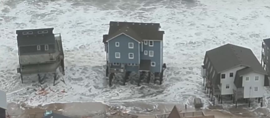 Cinco casas se derrumbaron en el Océano Atlántico en Buxton, los Outer Banks de Carolina del Norte, mientras las olas de dos huracanes que pasaban en el mar golpearon la región.