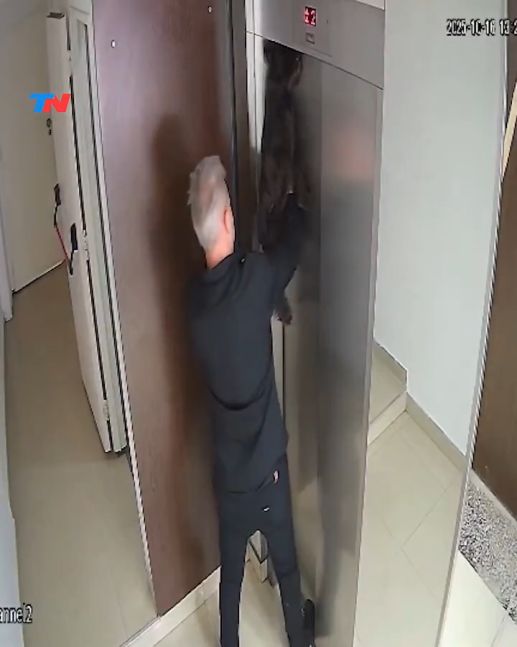 Un perro quedó fuera de un ascensor y quedó colgado por la correa, lo que comenzó a asfixiarlo. Afortunadamente, un hombre pudo rescatarlo y realizarle primeros auxilios.