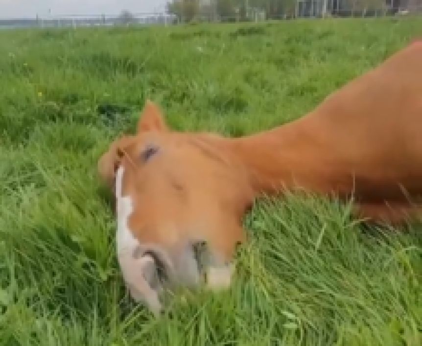 Este caballito se volvió viral en las últimas horas porque tenía mucha fiaca y decidió comer recostado.
